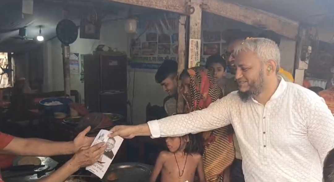 ঈগল মার্কা থেকে সরে দাঁড়িয়ে নৌকা প্রতীকের প্রচরণা করছেন মমিনুল হক সাঈদ। ছবিঃ ব্রাহ্মণবাড়িয়া