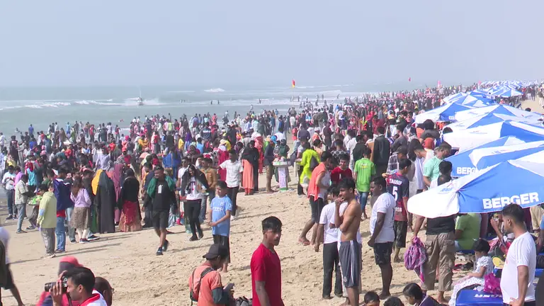 পর্যটকরা বলেন, পরিবার নিয়ে এসে খুব ভালো লাগছে। অনেক মানুষ এসেছে। সমুদ্র সবসময়ই ভালো লাগে।