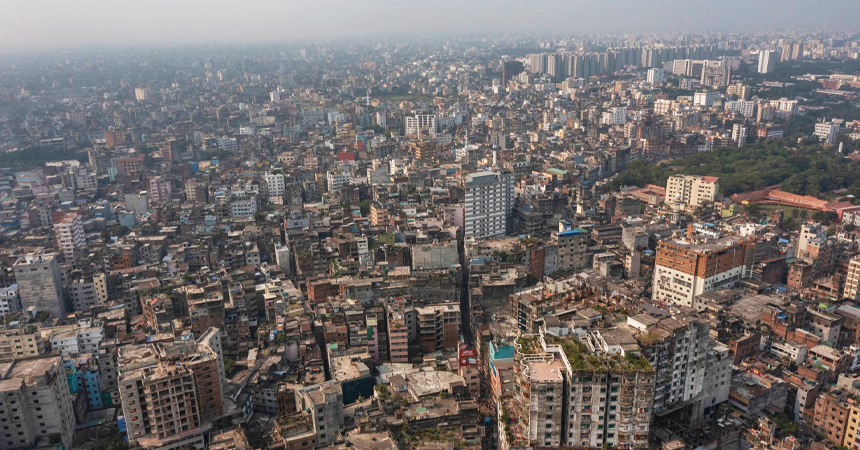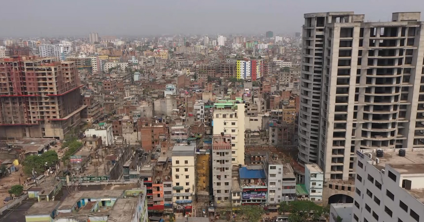 একটি-অপরটির গা ঘেঁষে দাঁড়ানো ঢাকার দালানগুলোর ছবি |ছবি: এপি