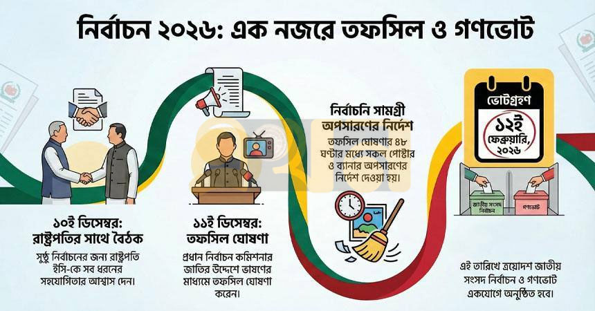 জানা গেছে, আগামী ৮ কিংবা ১২ ফেব্রুয়ারি ভোটগ্রহণের দিন ঠিক করে তফসিল ঘোষণা করবেন সিইসি।