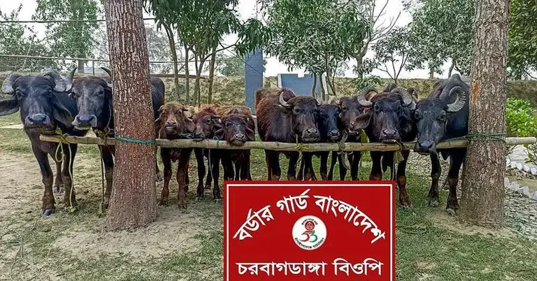 ৫৩ বিজিবি ব্যাটালিয়নের অধিনায়ক লেফটেন্যান্ট কর্নেল মো. মনির-উজ-জামান বিষয়টি নিশ্চিত করে জানান, গোপন সংবাদের ভিত্তিতে বিজিবির একটি দল চরবাগডাঙ্গার সাদ্দামের চর এলাকায় অভিযান চালায়। এ সময় সীমান্তের নিকটবর্তী একটি মাঠে মালিকবিহীন অবস্থায় ১০টি মহিষ আটক করা হয়। মহিষগুলো চোরাচালানের মাধ্যমে ভারত থেকে এনে সেখানে বেঁধে রাখা হয়েছিল।