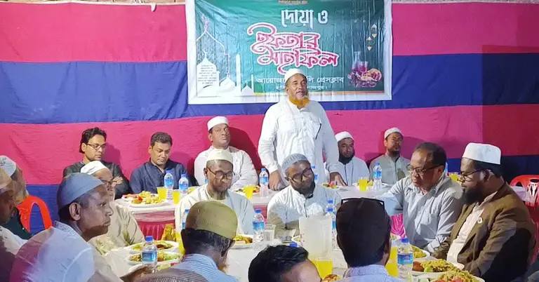 ইফতার অনুষ্ঠানে প্রয়াত সাংবাদিকদের রুহের মাগফেরাত কামনা করে দোয়া পরিচালনা করেন জামায়াতের ইসলামির আমির আমিনুল ইসলাম।