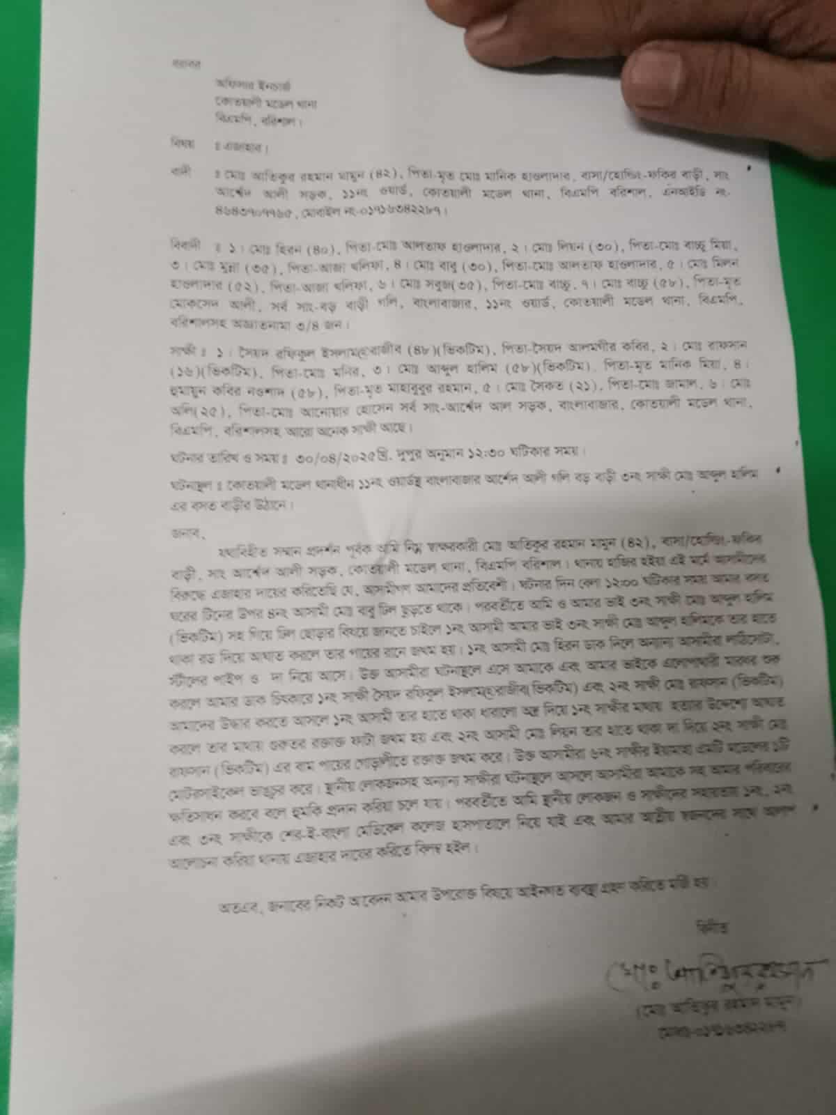 ভুক্তভোগী জানান, গতকাল দুপুরে বরিশাল নগরীর ১১ নম্বর ওয়ার্ডের বাংলাবাজার আর্শেদ আলী গলির বড়বাড়ি এলাকায় অভিযুক্ত হিরন, লিমনসহ আরও ১২ থেকে ১৩ জন হামলা চালায়।