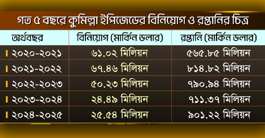 করোনা ও ইউক্রেন-রাশিয়া যুদ্ধের ধাক্কা কাটিয়ে ফের ঘুরে দাঁড়িয়েছে কুমিল্লা ইপিজেড। ৫০ হাজার শ্রমিকের প্রাণচাঞ্চল্যে মুখরিত ইপিজেডে কাজ করছে ৬৬ শতাংশ নারী। প্রতিমাসে এখানকার শ্রমিকদের বেতন-ভাতা বাবদ খরচ প্রায় ২৫০কোটি টাকা। যা চাঙা করছে স্থানীয় অর্থনীতিকেও।
