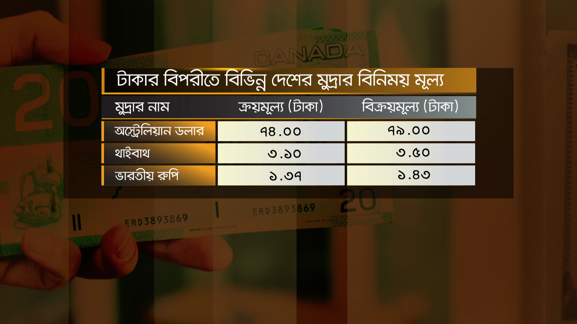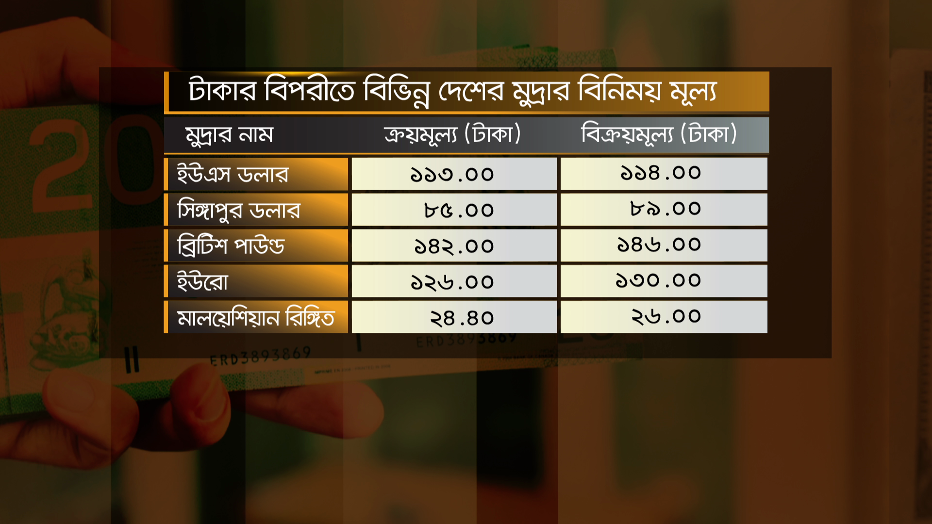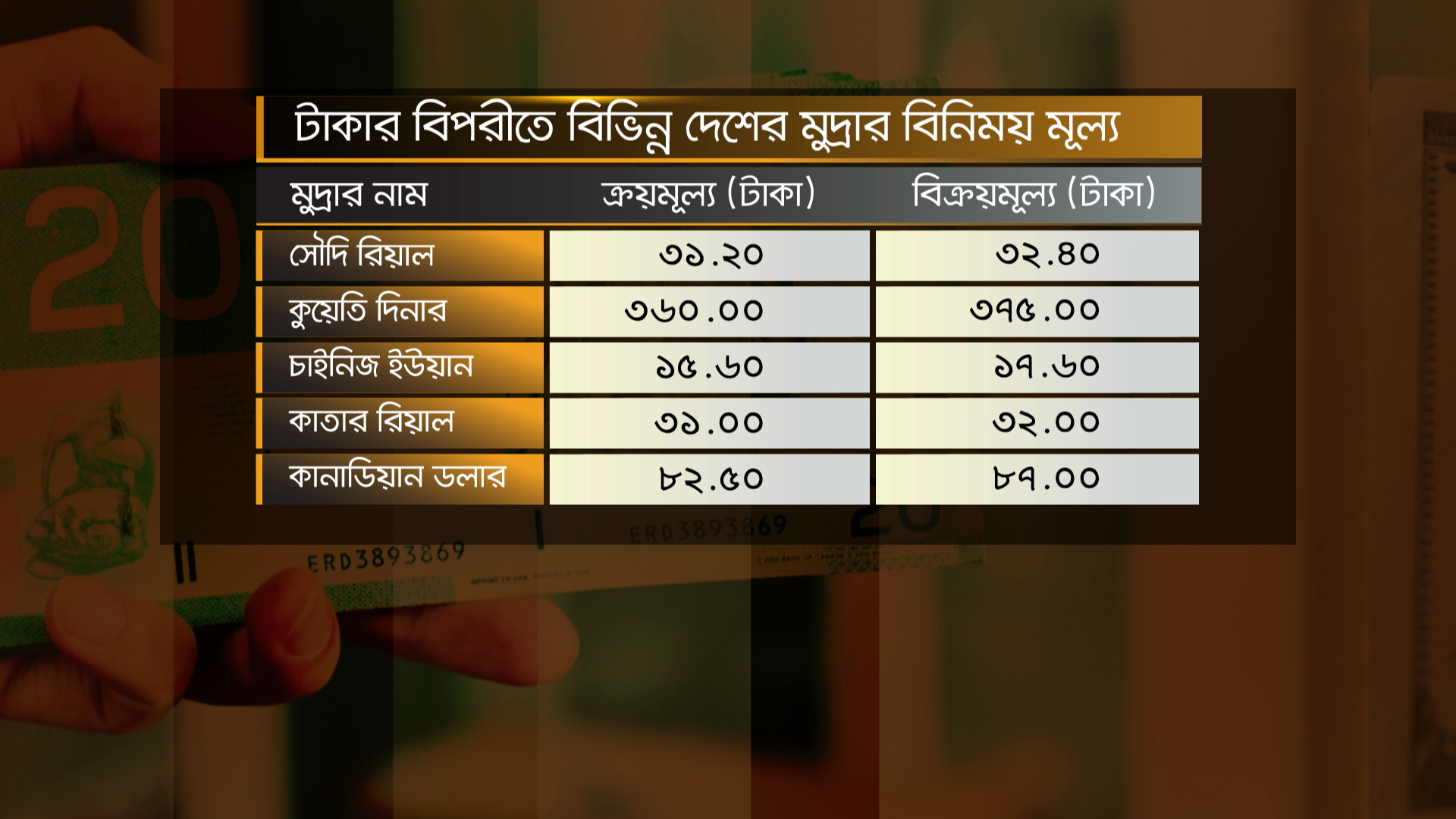 রোববার টাকার বিপরীতে বিভিন্ন দেশের মুদ্রার বিনিময় মূল্য