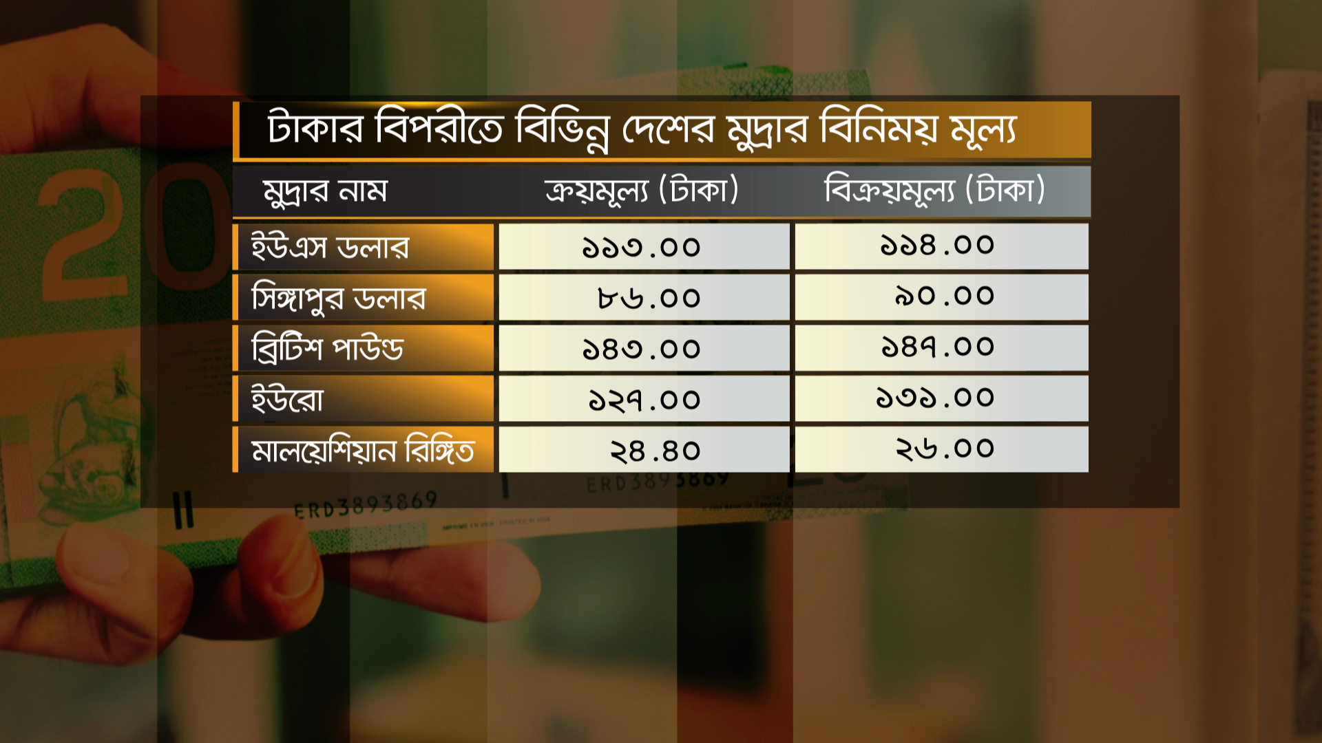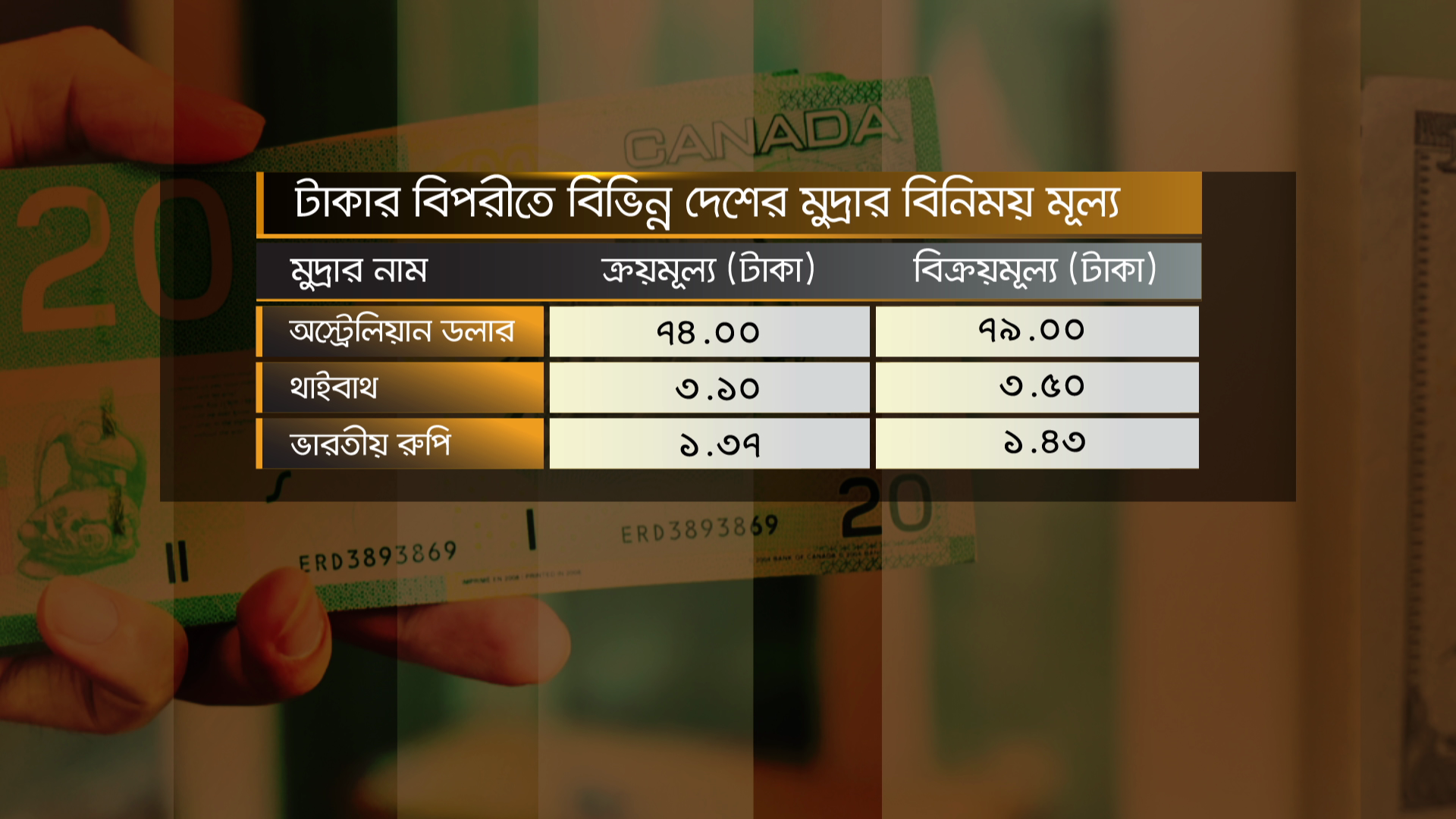 রোববার টাকার বিপরীতে বিভিন্ন দেশের মুদ্রার বিনিময় মূল্য