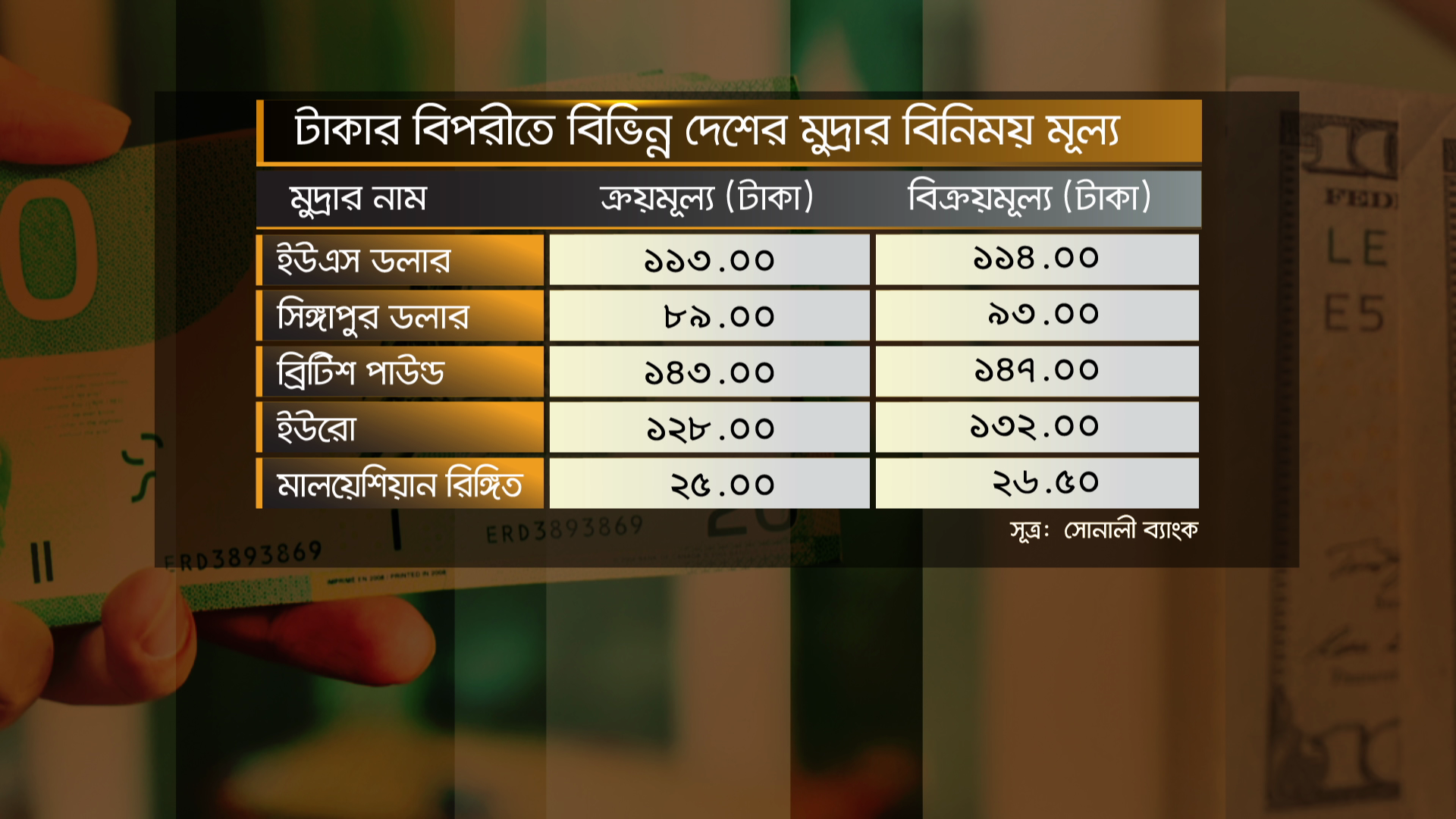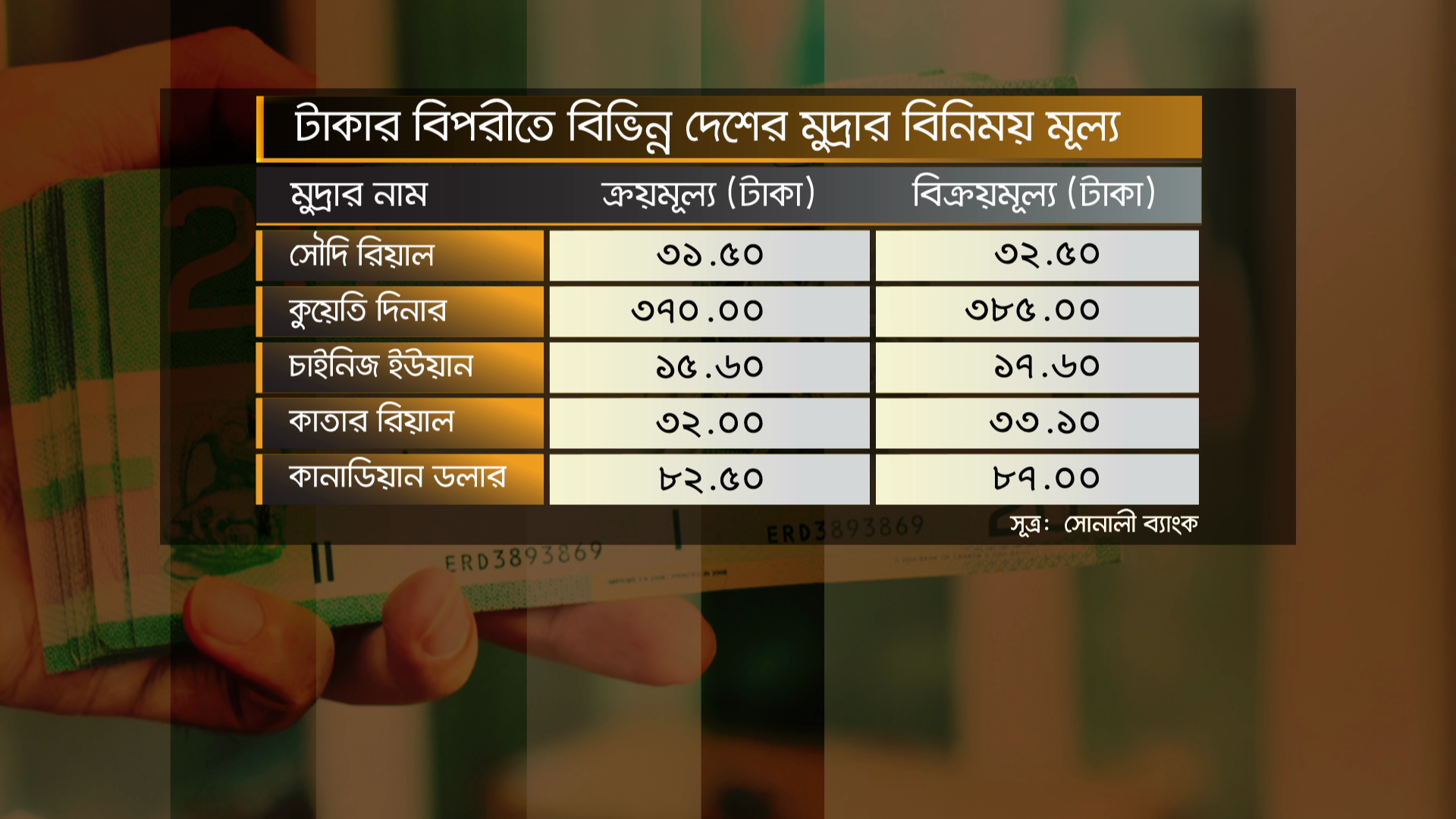 বৃহস্পতিবার টাকার বিপরীতে বিভিন্ন দেশের মুদ্রার বিনিময় মূল্য