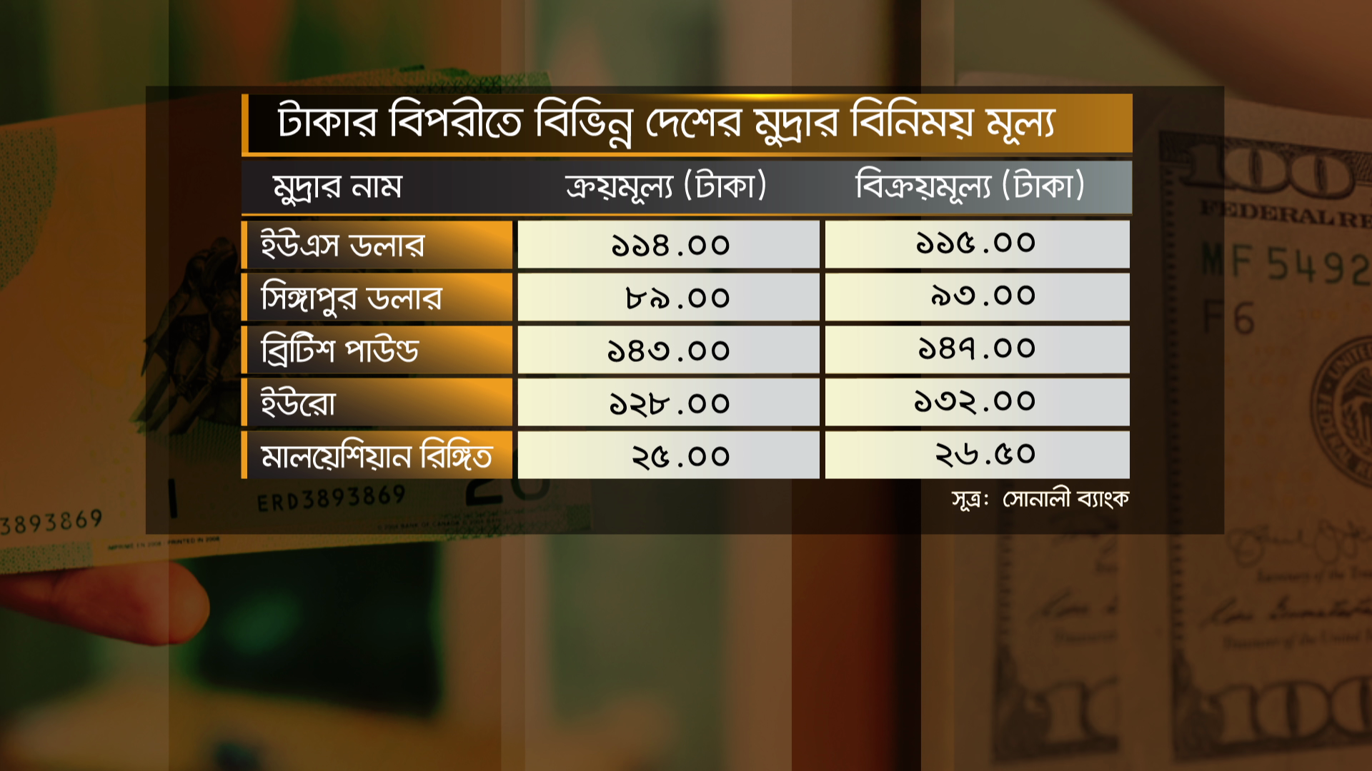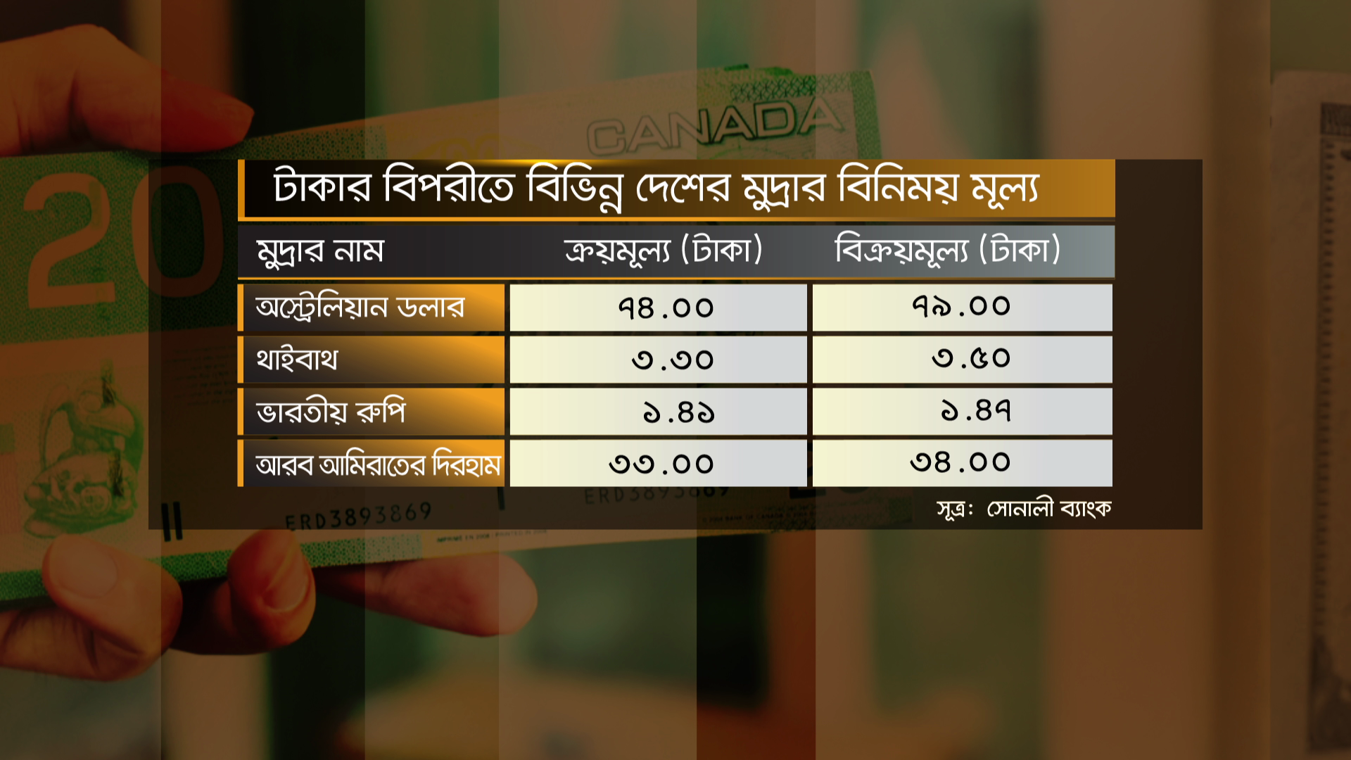 সোমবার (২৯ জানুয়ারি) টাকার বিপরীতে বিভিন্ন দেশের মুদ্রার বিনিময় মূল্য