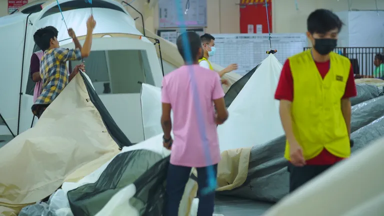 শ্রমিকরা বলেন, 'একজন ক্রেতা যেভাবে সেটআপ করে দেখে আমরাও তেমনভাবে দেখি যে কোন সমস্যা হয় কি না। যখন পুরো তাঁবুটা তৈরি হয় তখন আমাদের মনে আনন্দ লাগে।'