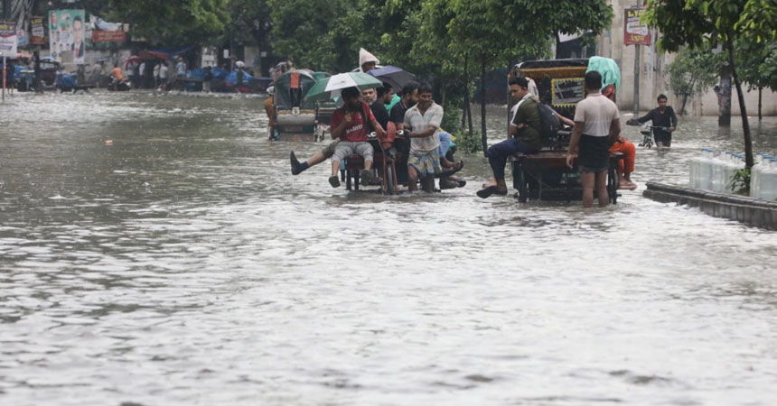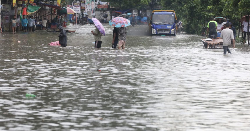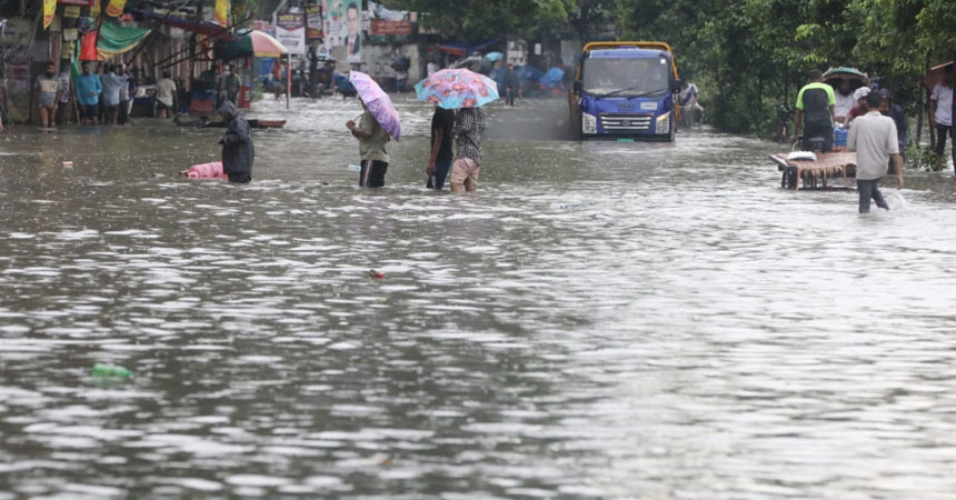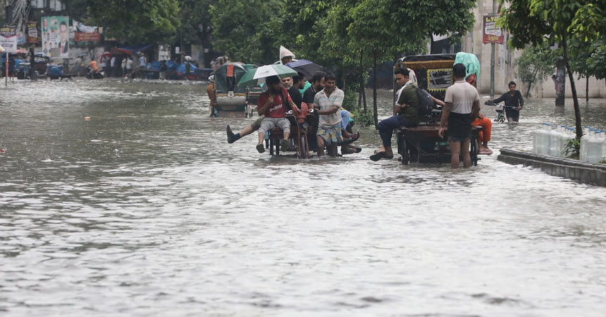ঢাকা কলেজ, মিরপুর রোড, নায়েমের গলি, নিউ মার্কেটের ২নং গেট, হকার্স মার্কেট, চন্দ্রিমা মার্কেট, আজিমপুরসহ নানা এলাকায় খুব সহজে পানি নেমে যাওয়ার কোনো উপায় দেখা যাচ্ছে না। | ছবি: সংগৃহীত
