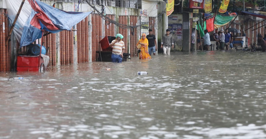 রাস্তায় ও গলিতে পানি জমে থাকার কারণে এলাকার অধিকাংশ দোকানপাটই বন্ধ | ছবি: সংগৃহীত