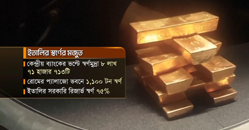 স্বর্ণের সঙ্গে ইতালির সম্পর্ক বহু পুরনো। বার্তা সংস্থা রয়টার্সের তথ্য মতে, দেশটির কেন্দ্রীয় ব্যাংকে মজুত আছে প্রায় আড়াই হাজার টন স্বর্ণ। যার বাজারমূল্য প্রায় ৩০ হাজার কোটি ডলার।