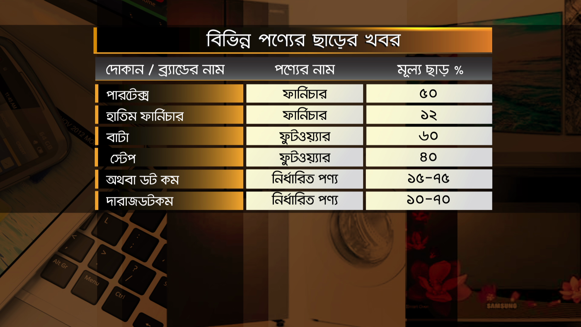 বিভিন্ন পণ্যের ছাড়ের খবর (২৬ এপ্রিল ২০২৪)