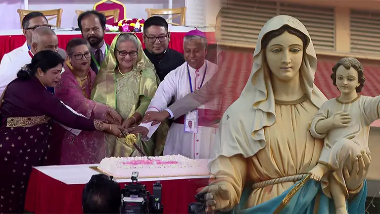 স্বাগত পর্ব শেষে খ্রিস্টান সম্প্রদায়ের আর্চ বিশপের বক্তব্যের পরই বক্তব্য দেন প্রধানমন্ত্রী। অসাম্প্রদায়িক বাংলাদেশ গড়তে তাঁর সরকারের ভূমিকার কথা তুলে ধরেন।