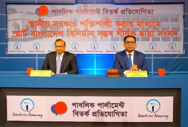 স্থানীয় সরকার শক্তিশালীকরণে এই ছায়া সংসদে সরকারি দল হিসেবে বাংলাদেশ ইউনির্ভাসিটি অব বিজনেস অ্যান্ড টেকনোলজি ও বিরোধী দল হিসেবে ইস্ট ওয়েস্ট ইউনিভার্সিটির বিতার্কিকরা অংশগ্রহণ করেন।