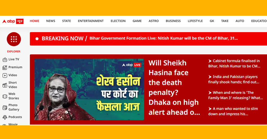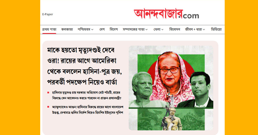 এবিপি লাইভ–এ প্রধান শিরোনামেই রয়েছে হাসিনার বিচার। পশ্চিমবঙ্গের আনন্দবাজার পত্রিকা ও সংবাদ প্রতিদিন– উভয় পত্রিকায় এটি লিড নিউজ হিসেবে প্রকাশিত।