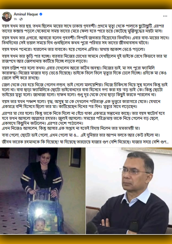 আমিনুল হকের পুরো ফেসবুক পোস্ট—