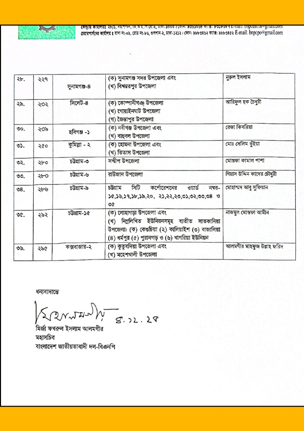 আরও ৩৬ আসনে বিএনপির মনোনয়ন প্রার্থীর তালিকা পিডিএফ (BNP candidate list PDF) দেখতে ক্লিক করুন।