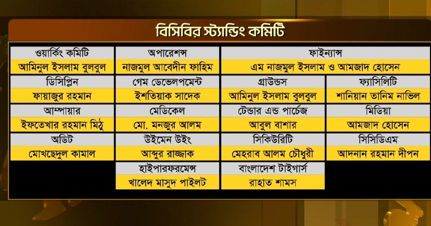 বর্তমান সভাপতি বুলবুল দায়িত্ব পালন করবেন বিপিএলসহ ৩টি কমিটির।নাজমুল আবেদীন ফাহিম এবং ইফতেখার রহমান মিঠু থাকছেন আগের দায়িত্বেই। তবে দায়িত্ব পাননি ভাইস প্রেসিডেন্ট ফারুক আহমেদ।