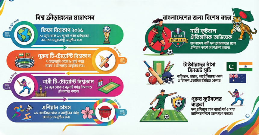 ক্রীড়া পঞ্জিকা ২০২৬: ফুটবল বিশ্বকাপ, ক্রিকেটের জোড়া বিশ্ব আসর ও বাংলাদেশের ব্যস্ত সূচিসহ খেলার দুনিয়ায় আর কী কী টুর্নামেন্ট থাকছে?