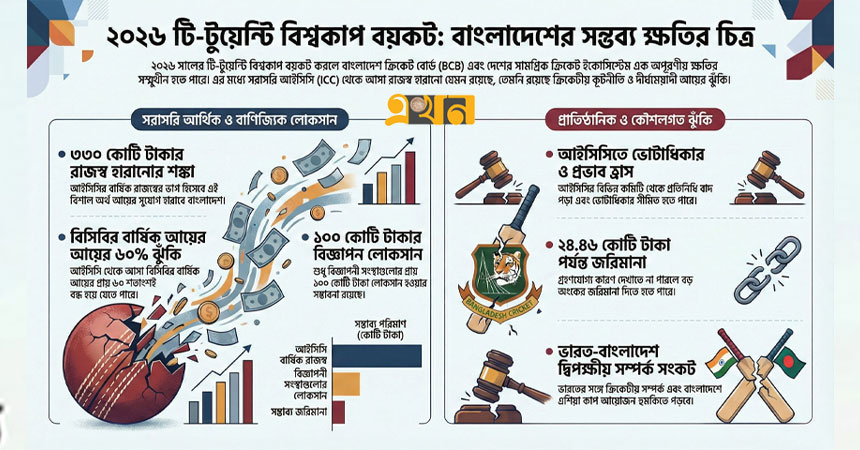 নোট: এই ক্ষতি বিসিবির মোট বার্ষিক আয়ের প্রায় ৬০ শতাংশ। এর ফলে ঘরোয়া ক্রিকেটের অবকাঠামো উন্নয়ন এবং খেলোয়াড়দের পারিশ্রমিকের ওপর দীর্ঘমেয়াদী প্রভাব পড়তে পারে।